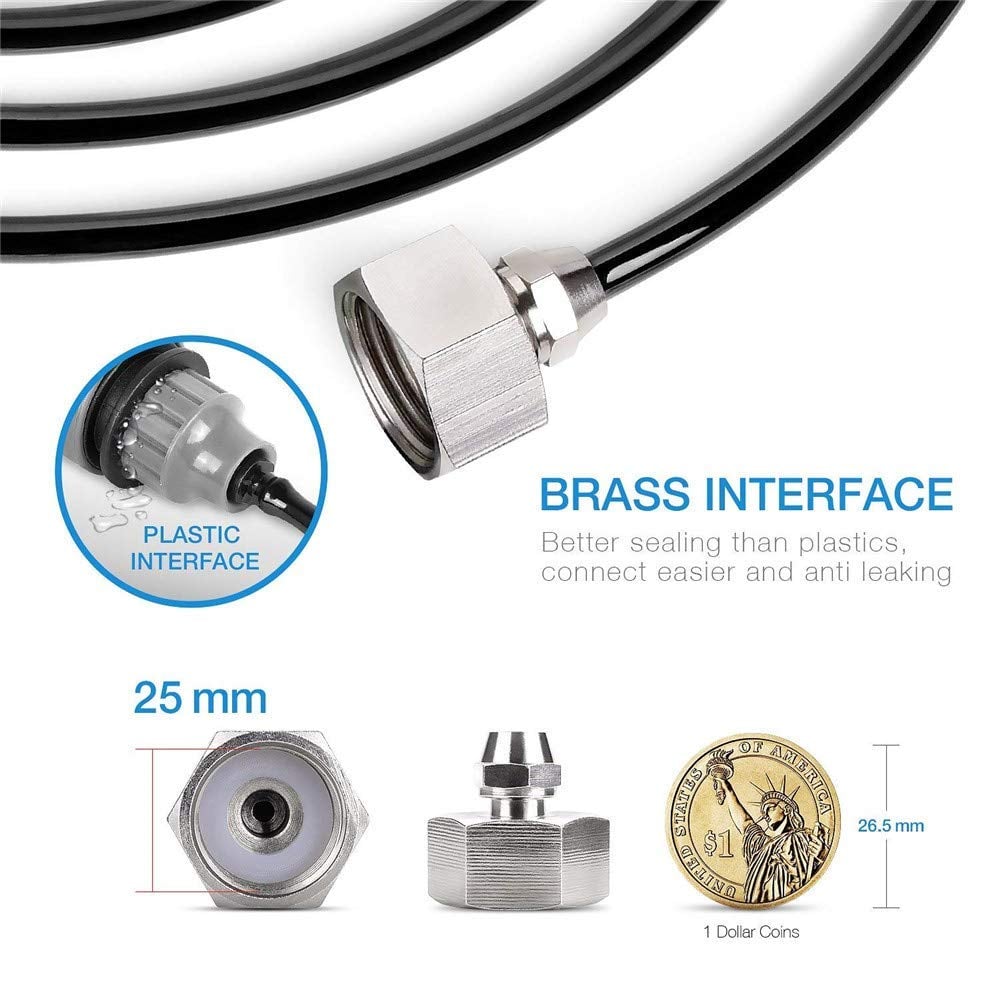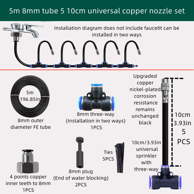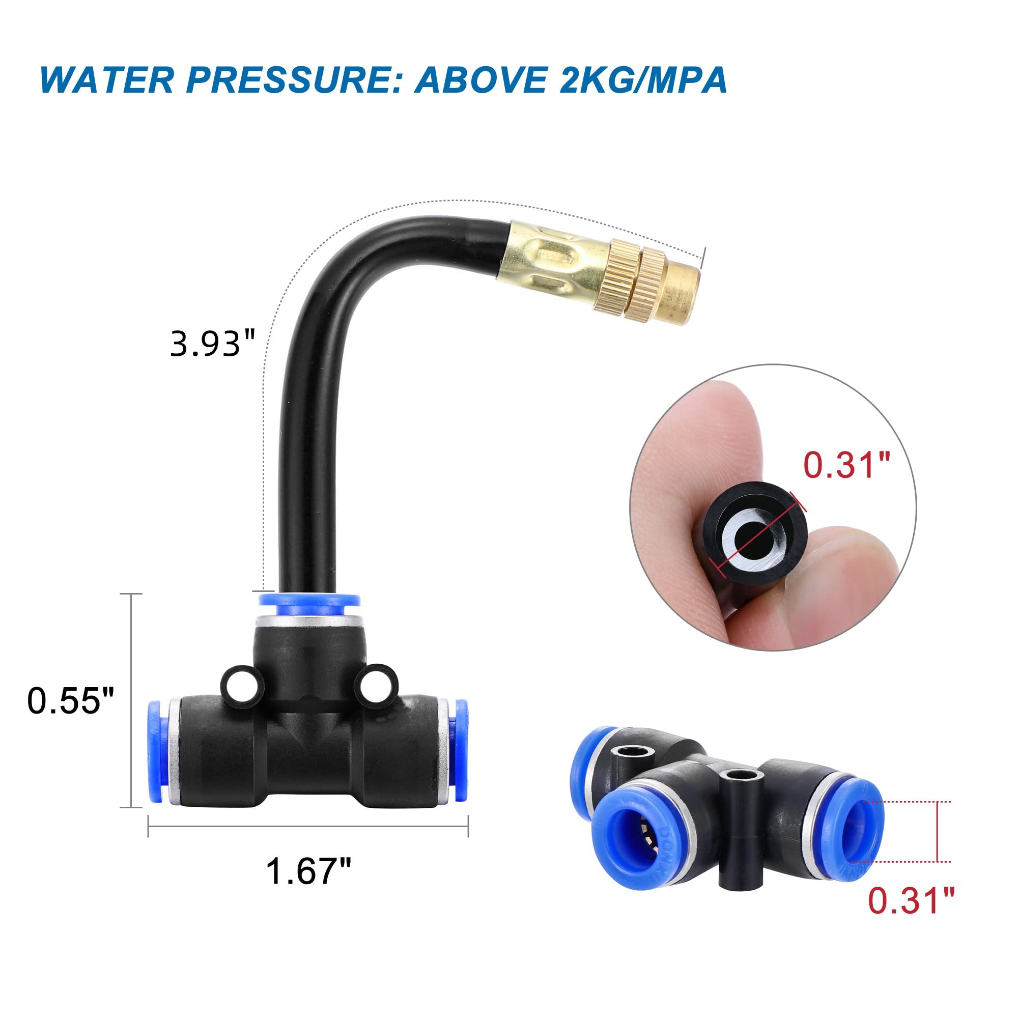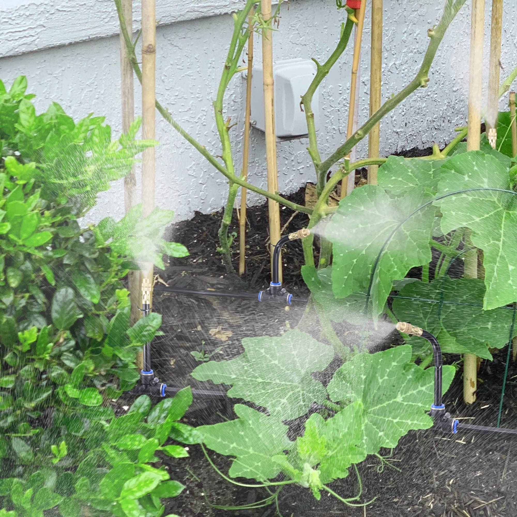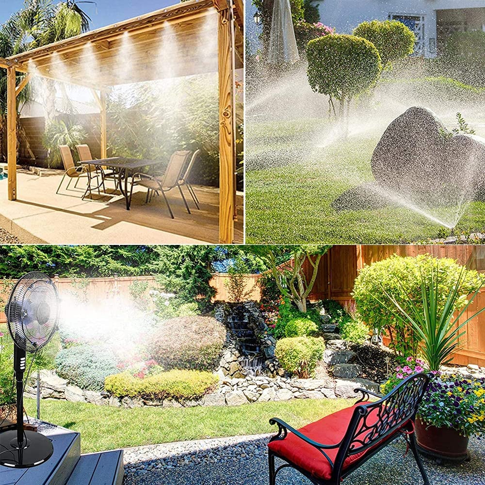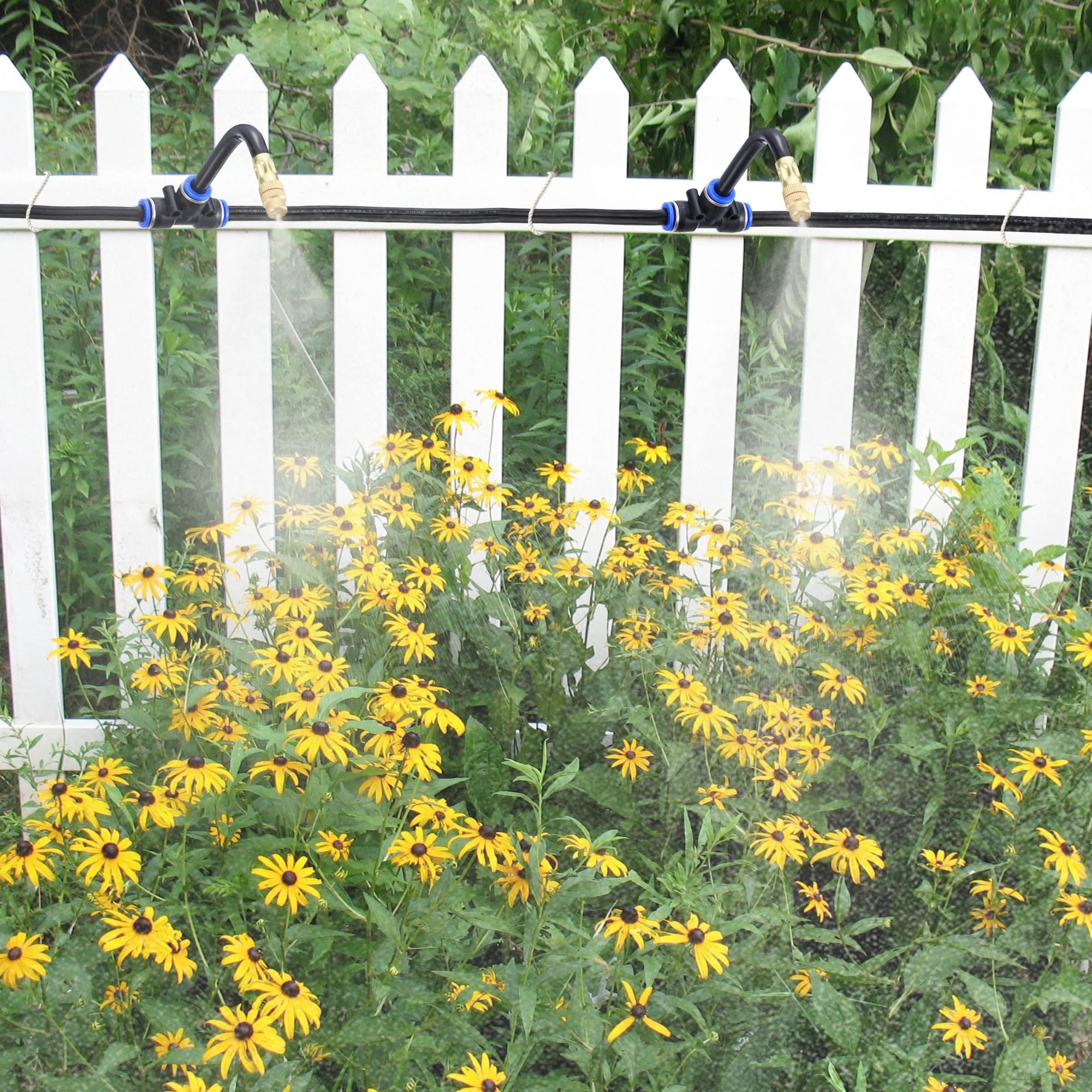 Upgrade quality: Updated mist nozzles are made of precision brass, Easy connect, leak-proof and self-sealing Tee Joint, high quality UV treated flexible tubing; The misting set can serve you for a long time