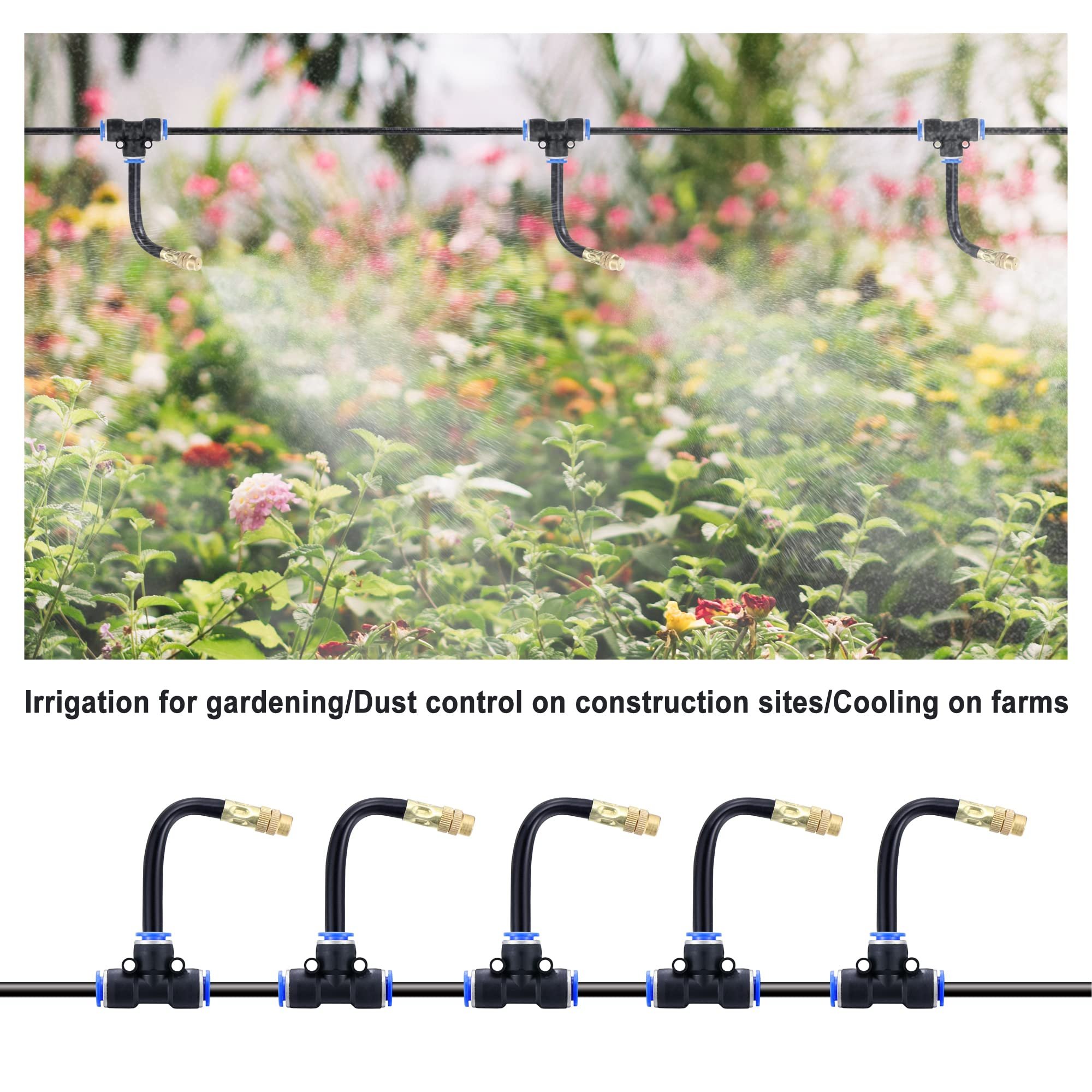 Upgrade quality: Updated mist nozzles are made of precision brass, Easy connect, leak-proof and self-sealing Tee Joint, high quality UV treated flexible tubing; The misting set can serve you for a long time